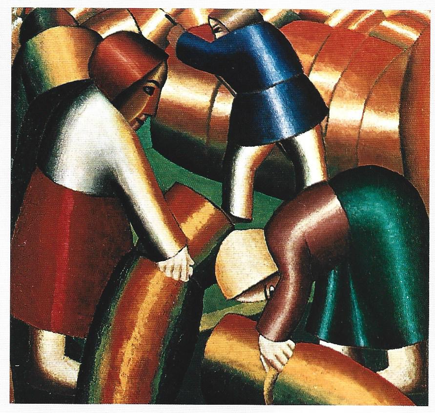 1910년 모스크바에서 열린 '다이아몬드 잭' 전시회는 서구의 영향에서 벗어나고자 하는 러시아 미술 운동을 드러내고 정의함. 대중은 이 전시회에서 처음으로 말레비치의 작품들을 볼수 있었다. 말레비치는 타원형의 절단면들에 기초한 공간 속에 , 과장되게 커다란 손발을 가진 거대한 인물들을 그려냄으로써 노동의 세계에 대한 표현에 하나의 상징적 의미를 부여하였다. 대다수의 아방가르드 미술가들과 마찬가지로 말레비치 역시 정치적으로 명확한 태도를 취하였으며, 1905년 혁명에 열렬한 관심을 표명하는 볼셰비키 체지의 방식에 찬동하였다.