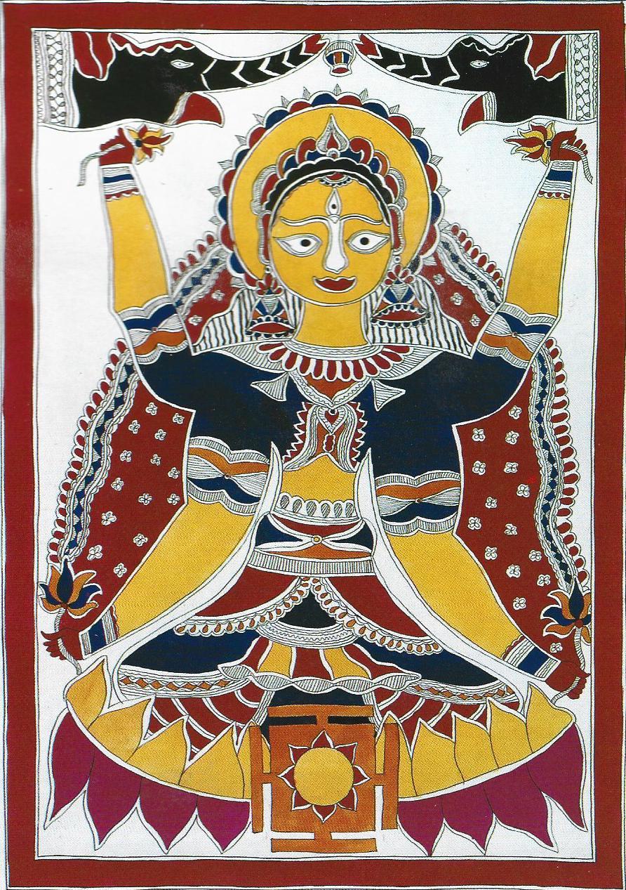 연꽃 위에 앉아 있는 여인, 온 세계의 어머니, 그녀는 환생으로 태어나는 비슈누를 따라 같이 이 세상에 나오면서 그 때마다 다른 이름으로 비슈누와 함께합니다.