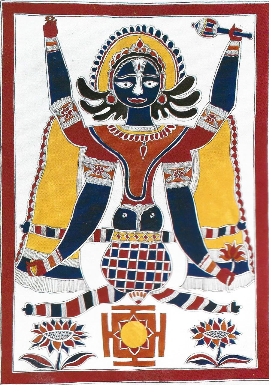 연꽃 위에 앉아 있는 여인, 온 세계의 어머니, 그녀는 환생으로 태어나는 비슈누를 따라 같이 이 세상에 나오면서 그 때마다 다른 이름으로 비슈누와 함께합니다.