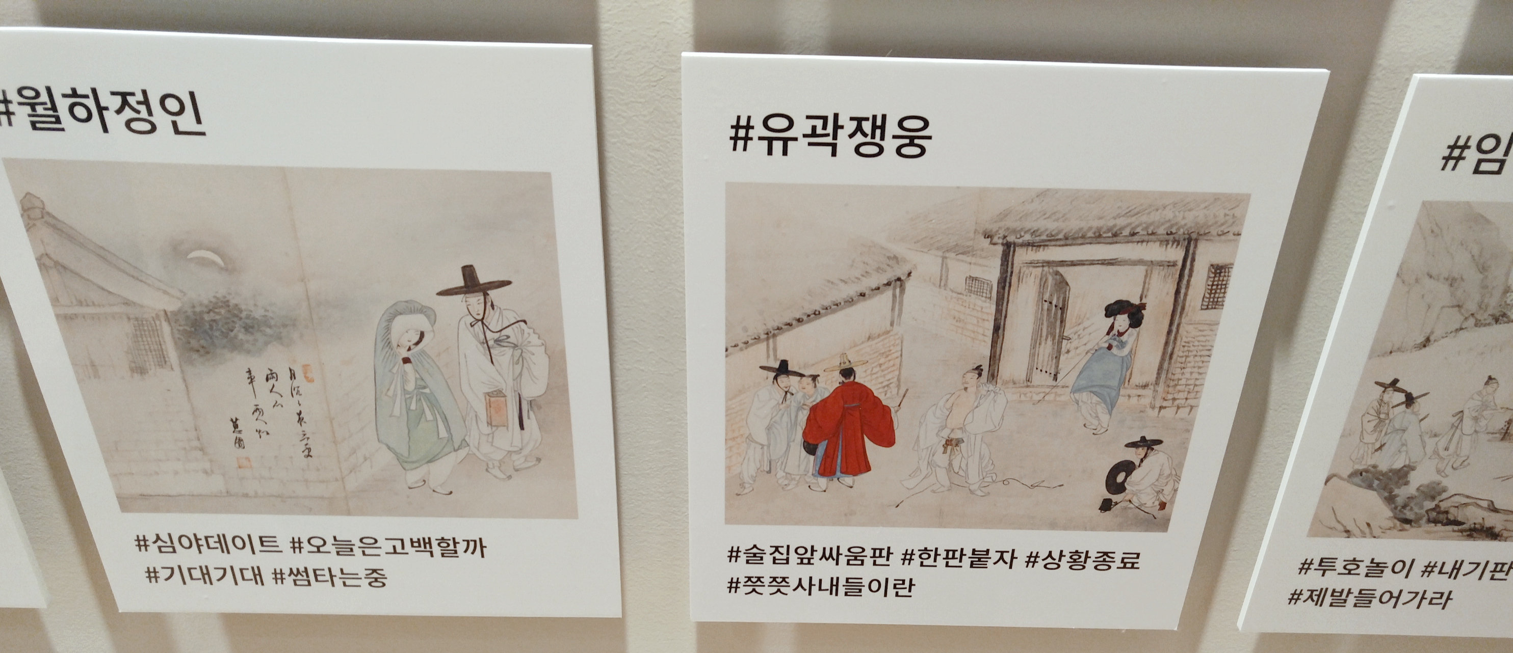 2017년에 ‘바람을 그리다‘라는 전시회가 열린 적이 있었어요. 신윤복 선생님과 정선 선생님의 그림을 테마로 한 전시회였는데 그림 상황을 지금 시대에 맞춰 해시태그도 넣어가며 누구나 재미있게 볼 수 있도록 한 전시였습니다. 디지털 아트도 함께해서 되게 멋있기도 했구요.