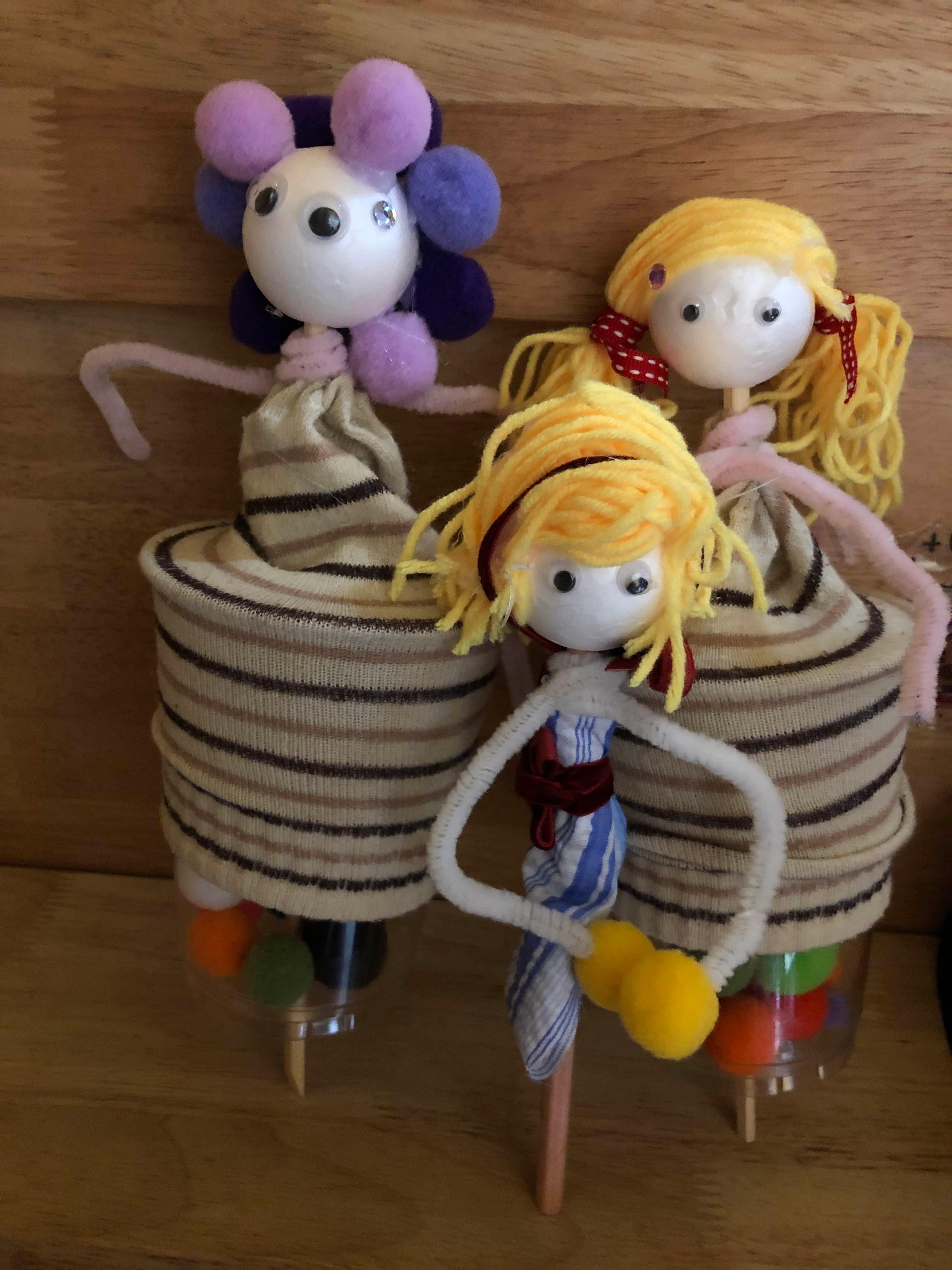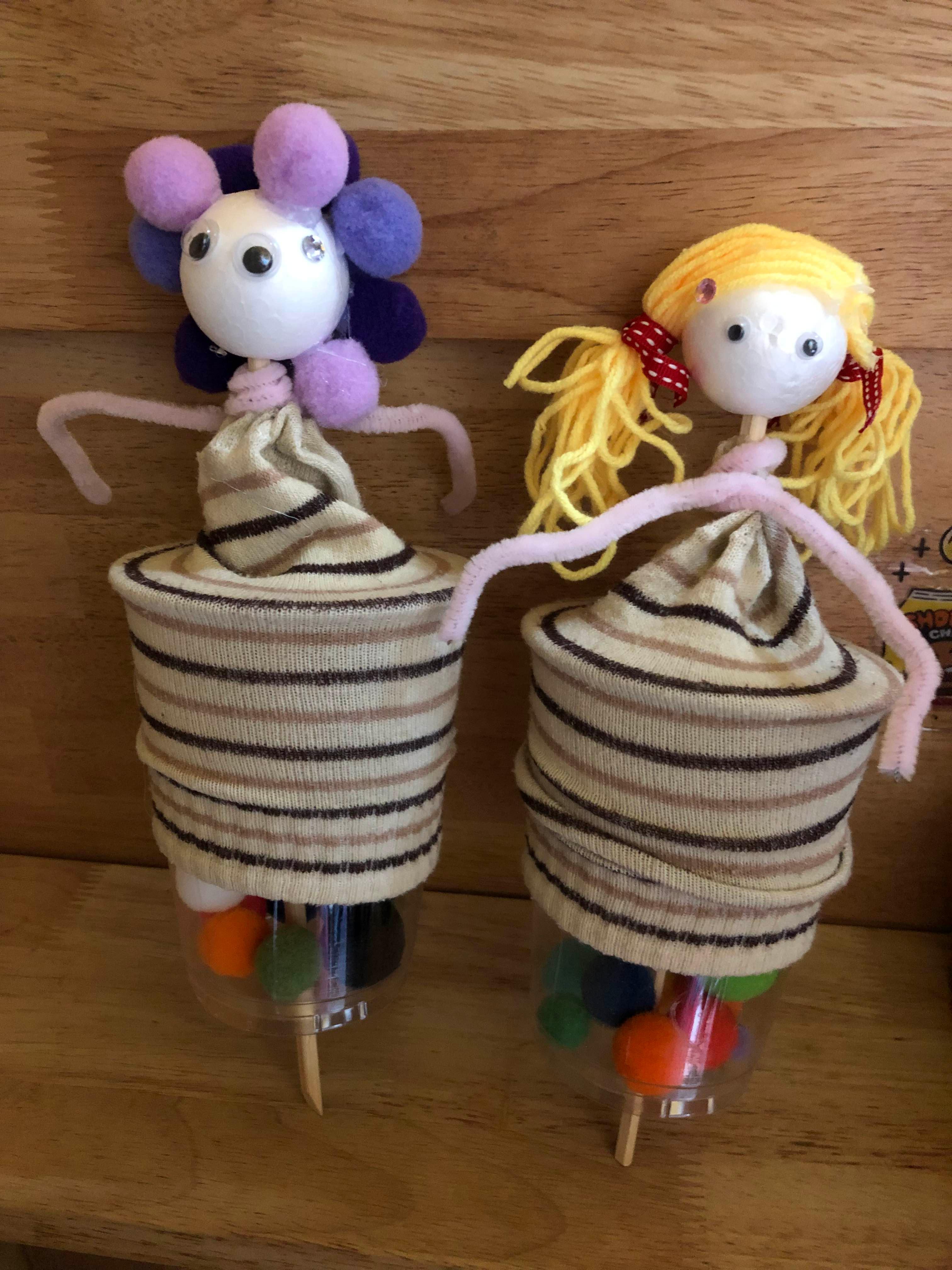 양말을 컵에 꺼워주었어요. 훌륭한 인형옷이 되어주었답니다.