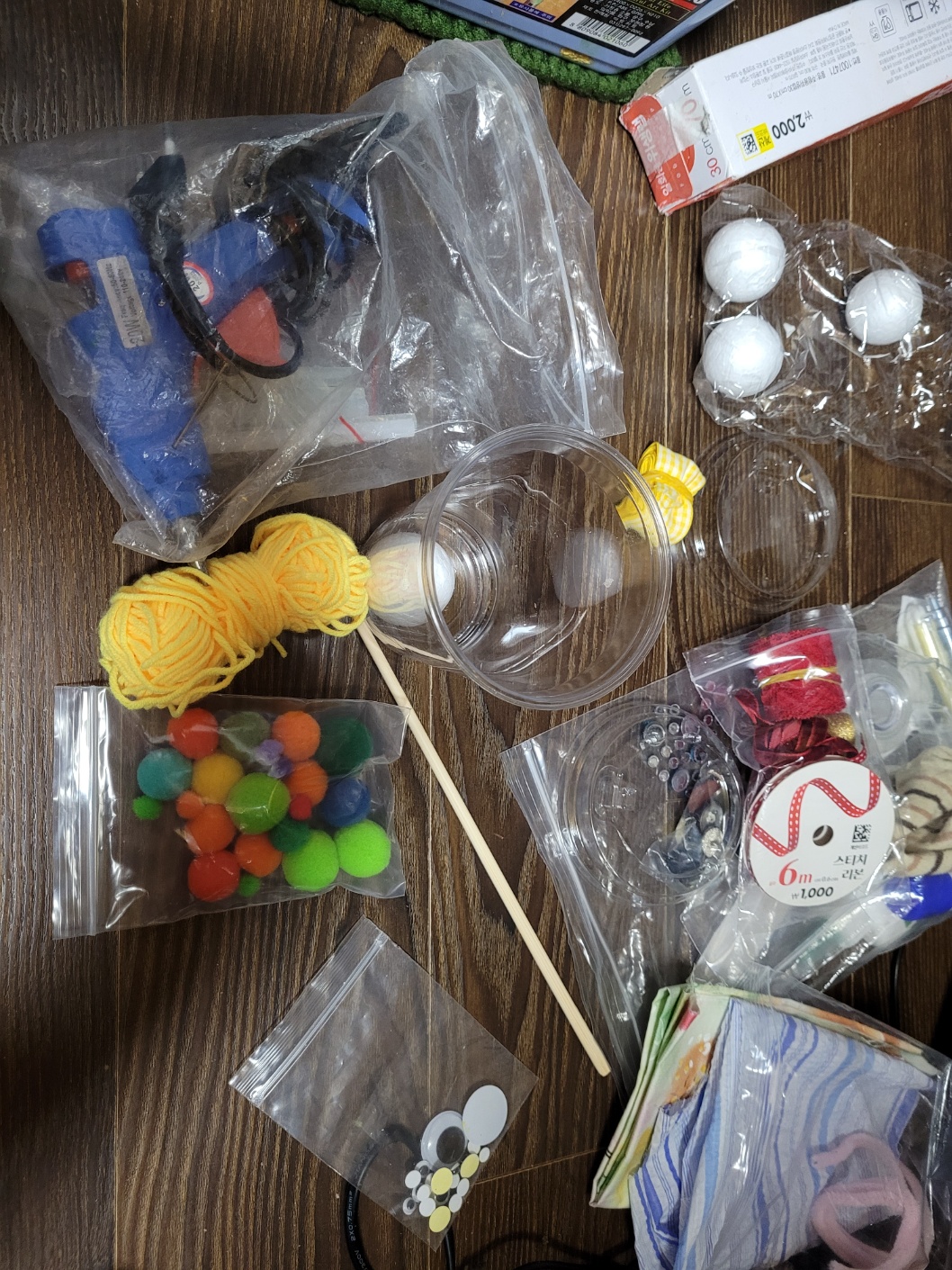투명컵이라 폼폼이들도 몇개 넣어주었습니다.
