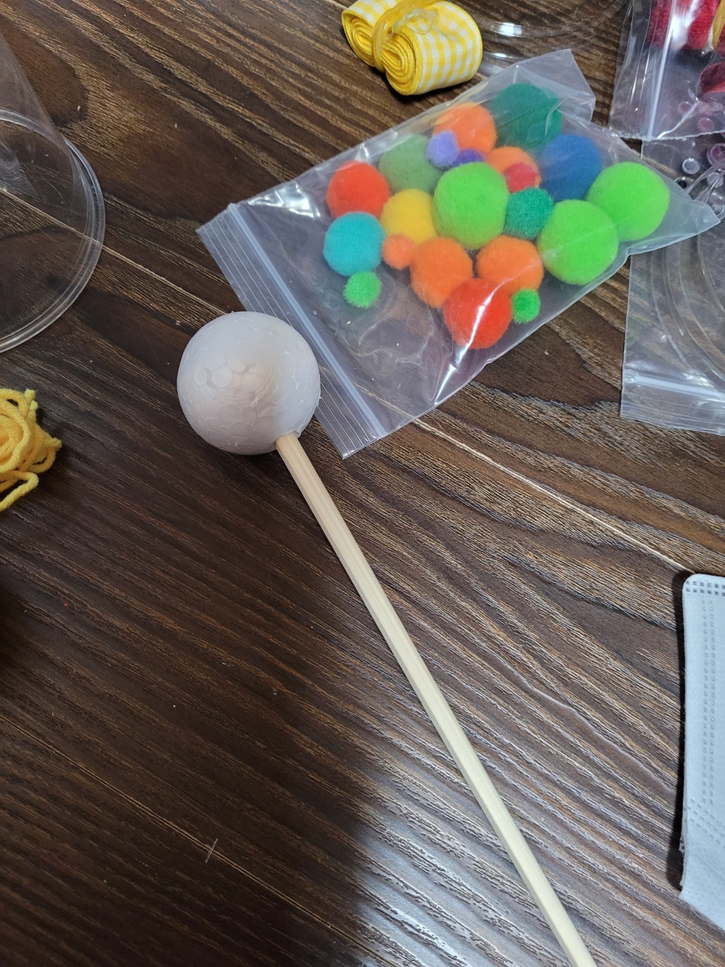 우드락 볼에 젓가락을 사용해 구멍을 뚫고 글루건으로 붙여주었어요.