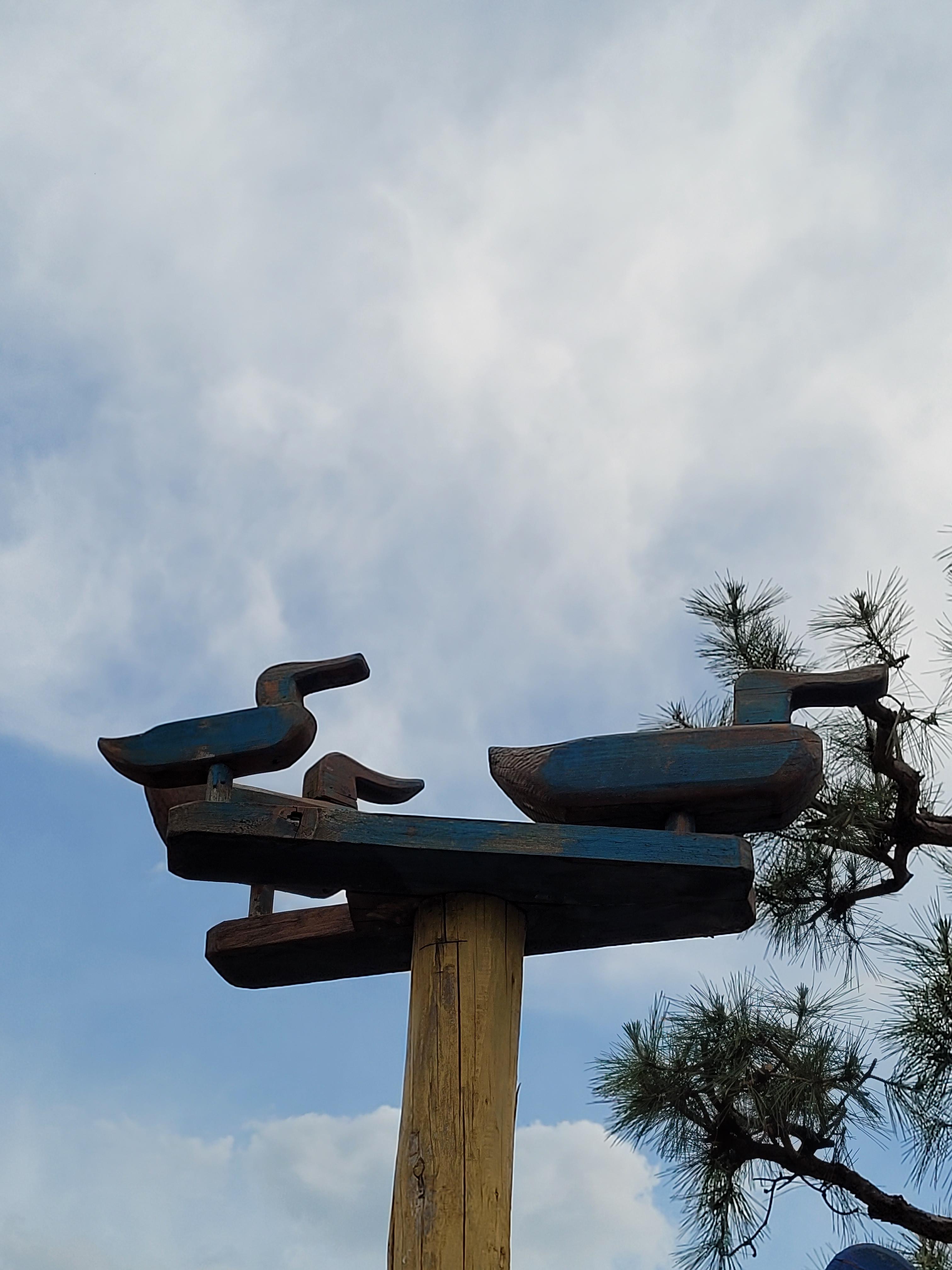 솟대는 일반적으로 기둥의 꼭대기에 새, 특히 두루미나 까마귀를 조각한 형태로 나타나는데 마을의 수호신 역할을 한다고 해요.