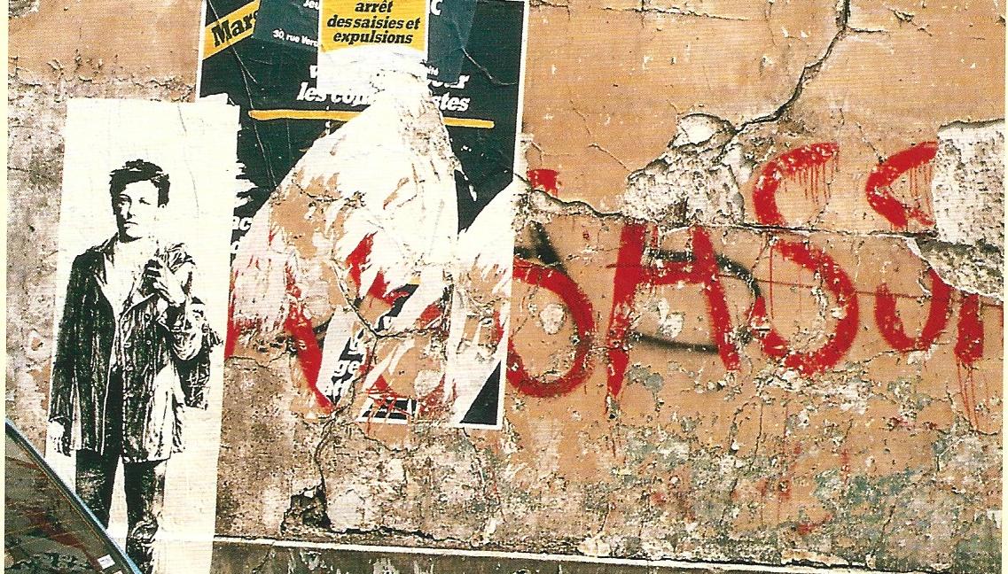 에르네스트 피뇽 에르네스트, <랭보>, 1978년 거리에 붙인 실크 스크린 “나는 데생과 자세 어깨에 걸친 웃옷, 연약한 손목, 옷의 선택에 많은 공을 기울였다.....카르자의 놀라운 사진과 판탱 라 투르의 그림, 그리고 다른 몇 가지 문서에 근거하여 그의 초상을 족히 백 번은 다시 그렸다.” 이 이미지는 매우 평범하고 약하고 찢어지기 쉬운 신문지 위에 그물눈 없이 검은색으로 인쇄되었다. 랭보의 모습은 그래피티로 덮인 담벼락과 샤를빌가를 비롯한 여러 곳에 붙여짐으로써 증식되었다. “조상처럼 보이지 않게 하기 위해... ,나는 방랑하는 여러 명의 일시적인 랭보의 모습을 만들었다.” Ph.ⓒ del’artiste/T ⓒADAGP,1999